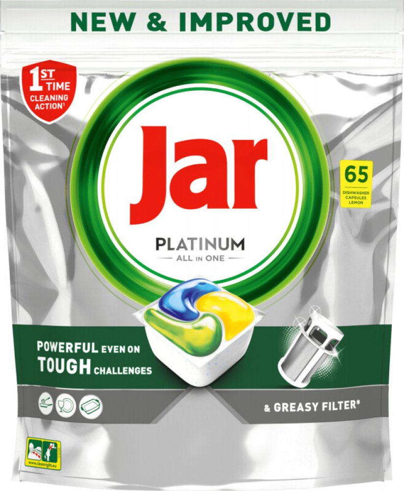 Jar tablety do myčky Platinum All in One Lemon v bezkonkurenční Jar akce! Získejte Jar kapsle do myčky Platinum 65 ks. Nechte své nádobí zářit! Nejlepší Jar cena.