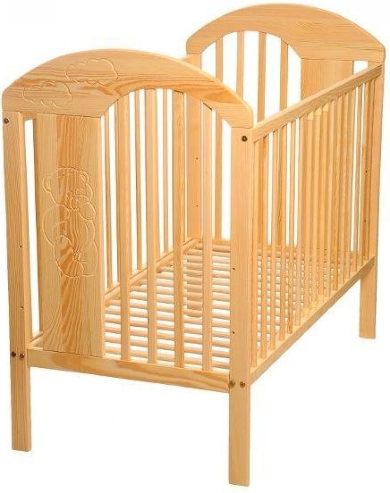 Krásná dětská postýlka z borovicového dřeva, zdobena vyřezávaným motivem medvídka. Postýlka má regulovatelný rošt – možnost nastavení do tří poloh. Hrany a příčky jsou masivnější a pevnější než bývá obvyklé u postýlek jiných značek. Rozměry 120x60cm. Matrace a povlečení nejsou součástí dodávky. Postýlka má ve spodní části šuplík s víkem. Na objednávku lze tuto postýlku dodat jen se stahovací bočni...