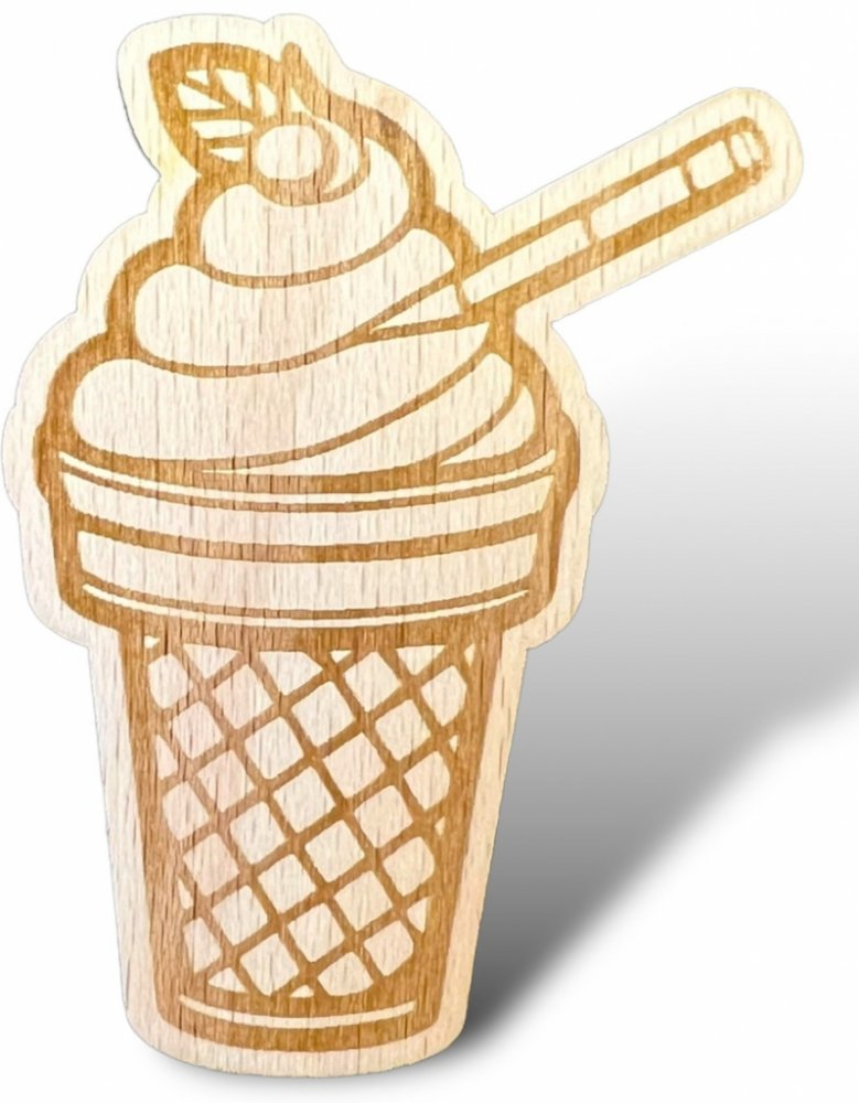 Zmrzlina vyrobena z bukové překližky o rozměru 6,5 cm x 5 cm.