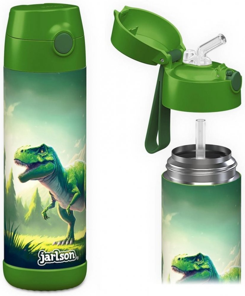 Jarlson Charli Dětská nerezová termoláhev s brčkem Dinosaurus 500 ml