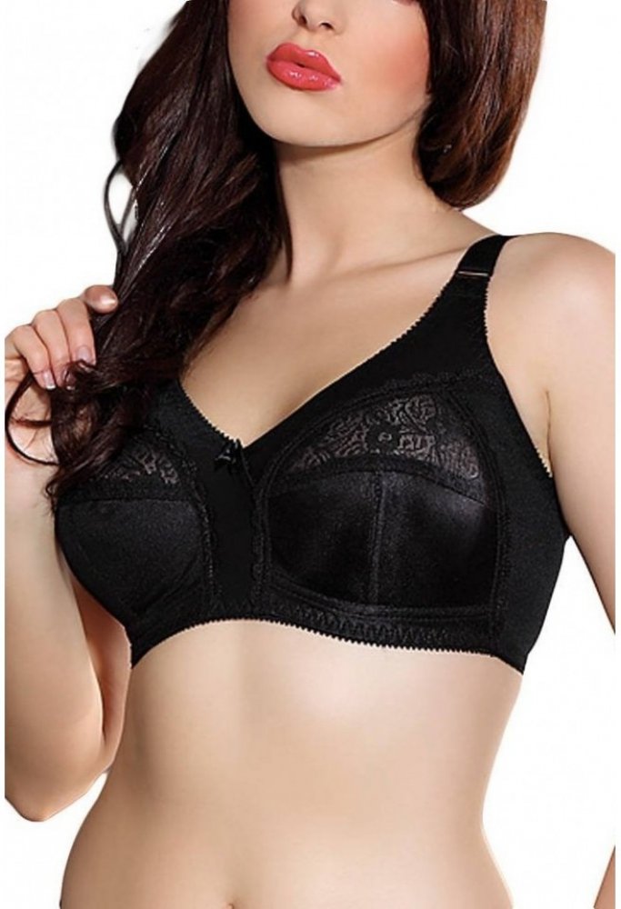 Měkká podprsenka bez kostic a drátků s širokými nastavitelnými ramínky a pohodlným zapínáním. Díky speciální konstrukci podprsenky vypadá poprsí skvěle. Spodní část košíčků je podšitá měkkou pleteninou, díky které je podprsenka příjemná na těle. Model s efektem Minimizer, který opticky zmenšuje poprsí. Ideální pro ženy, které si cení pohodlí.