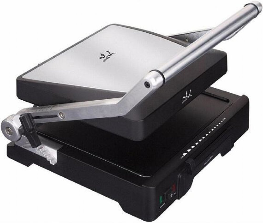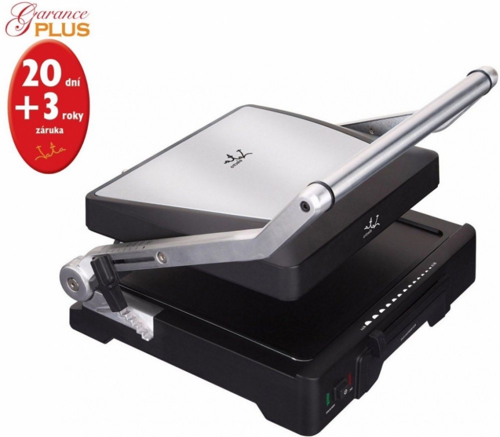 Kontaktní elektrický gril panini 2 v 1 - Jata GR1100. Elektrický gril panini s možností rozložení a grilování na obou grilovacích plochách najednou.