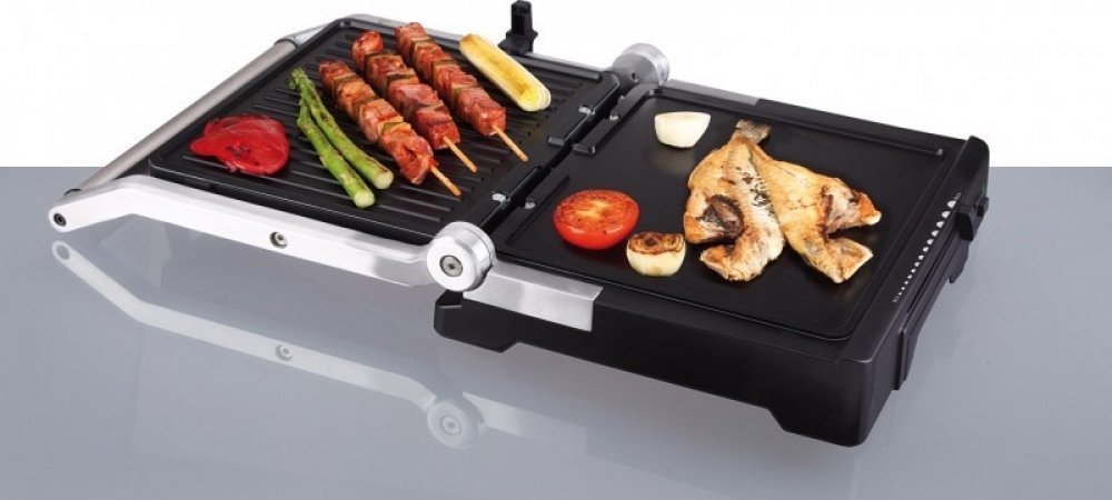 Možnost otevření grilu na 180º a grilovat tak na obou deskách zároveň
