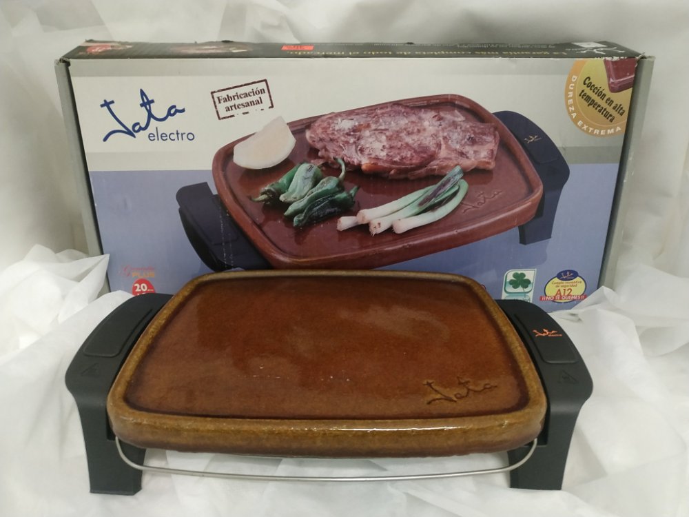 Terakotový gril Jata GR208, řemeslná ručně vyrobená deska, odolná proti poškrábání. Materiál Terakota poskytuje jedinečné vlastnosti přírodního materiálu pro grilování a zejména Vaše zdraví. Deska 27 x 22 cm. Topné těleso ve tvaru M - hřeje rovnoměrně po celé ploše. Teplotně izolovaná držadla pro přenášení. Grilujte i v kuchyní!. Snadné čištění a také možnost vložit do myčky. Příkon 550 W. - stolní terracota gril Jata GR208 - ručně vyrobeno ve Španělsku- deska 27x22 cm, můžete na ní i krájet- teplotně izolovaná držadla - příkon 550W- možnost vložit do myčky- topné těleso ve tvaru M - hřeje rovnoměrně po celé ploše- snadné čištění - možnost vložit do myčky Každá terakotová deska je originál. Hlavní výhodou terakotového grilu Jata GR208 je extrémní tvrdost. Deska je vypálená při velmi vysoké teplotě.Terakotový gril je přirozeně nepřilnavý a ke grilování tudíž potřbujete minimální množství tuku. Keramická deska je ručně vyráběna přímo ve Španělsku, můžete se tak spolehnout na opravdovou kvalitu. Povrch desky se snadno čistí, je vhodný i do myčky. Terakota je přírodní materiál, grilujete tedy zdravě bez PFOA, PTFE a dalších nebezpečných látek, které se objevují v materiálech jako teflon apod..Elektrický gril je praktický a můžete si ho vzít téměř kamkoliv a grilovat nejen venku, ale i doma v kuchyni, na terase, nebo např. v zimní zahradě. Je ideální pro všechny druhy masa, nechte si chutnat a užijte si garden party na plno. Po celá staletí španělští hrnčíři produkují vysoce kvalitní žáruvzdornou jílovou keramiku. Již v dokumentu z roku 1429 byla zmíněna pro její kvalitu a krásu, dnes je celosvětově uznávaná díky tradiční řemeslné výrobě.Každý kus je pečlivě kontrolován s ohledem na maximální kvalitu.Všechny desky jsou ručně vyráběné a tak nenajdete dva stejné kusy, každý je originál. Ručně vyráběná keramická 15 mm grilovací deska Terracota, vyráběna ve Španělsku ve vesnici Pereruela, která je jednou ze dvou míst na světě s ložiskem speciální hlíny pro výrobu Terracoty. Deska je velmi odolná a poskytuje grilovaným potravinám unikátní přírodní chuť. Společnost Jata byla založena ve Španělsku jako rodinná firma během války v roce 1943. Jata se zabývala především výrobou a prodejem malých elektrospotřebičů, což platí až dosud.Do roku 1980 se Jata dokázala stát ve Španělsku jedním z lídrů v prodeji domácích spotřebičů. Od roku 2001 je Jata spojena s firmou a značkou Deca (domácí potřeby) jako společnost Jata HOME, ale nadále se pro jednoduchost a tradici prezentuje jako Jata. Export Jata zahájila až v roce 2006 do Portugalska. Česká republika byla v roce 2011 teprve druhou zemí Evropy, na jejíž trh začala Jata své produkty dodávat.