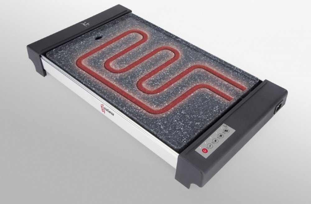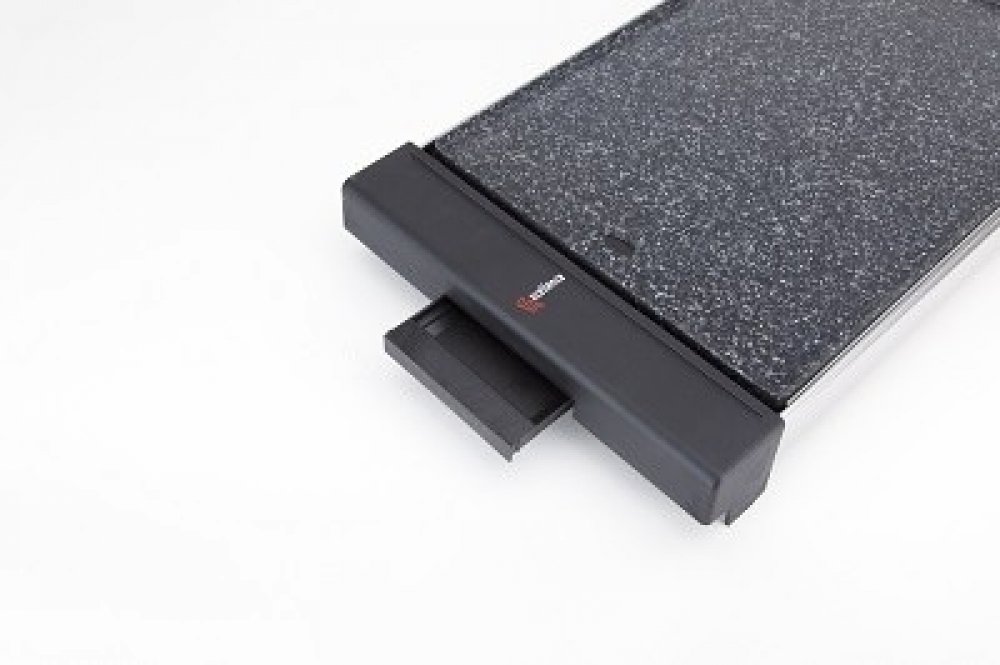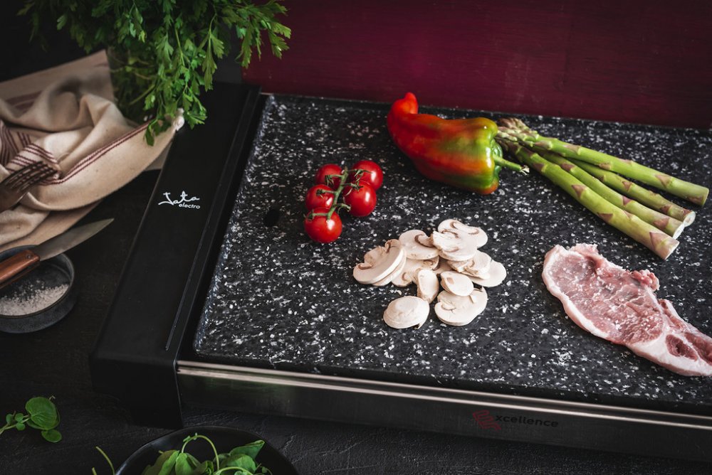 Dopřejte si grilované pokrmy v pohodlí domova a za jakéhokoliv počasí s chytrým stolním grilem Jata GR 3000. Španělská značka Jata a jejich unikátně zpracované výrobky jsou zárukou kvality a univerzálního použití, ať už budete připravovat malý zdravý pokrm nebo pořádnou hostinu. Výkonný gril GR 3000 má příkon 2650 W. Snadno přenosný stolní gril využijete jak na zahradě, tak v kuchyni v případě nepříznivého počasí. Granitová deska grilu Jata se vyznačuje vynikající odolností, a tak můžete bez obav využívat i kovové náčiní. Povrh je nepřilnavý a odolný vůči poškrábání. Tak kvalitní a odolný povrch vám ušetří také čas a námahu při jeho údržbě. Desku velmi snadno otřete, a navíc je vhodná také do myčky na nádobí. Elegantní vzhled desky v černém provedení se navíc hodí k jakémukoliv vybavení. Gril GR 3000 má topné těleso ve tvaru E, které zajišťuje rovnoměrný rozvod tepla po celé ploše. Na grilu lehce připravíte každý druh masa i zeleniny nebo lahodný sýr. Elektronické ovládání grilu je snadné a rychlé. K dispozici je nastavení 4 teplot na 75 / 120 / 160 a 230 °C.