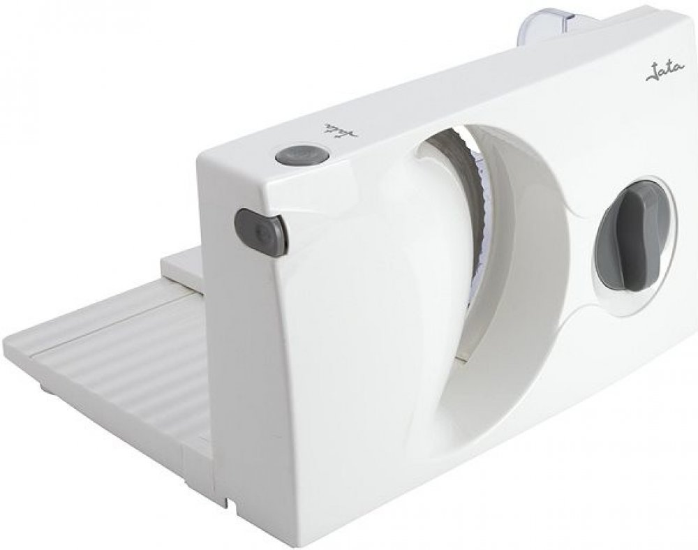 Stolní elektrický kráječ.Odnímatelný ozubený nůž o průměru 17 cm. Pro krájení všech druhů potravin o síle 0 - 15 mm. Dva bezpečnostní stupně. Snadno rozebiratelný pro čištění. Sklopný, pro úsporu místa. Příkon 150 W.