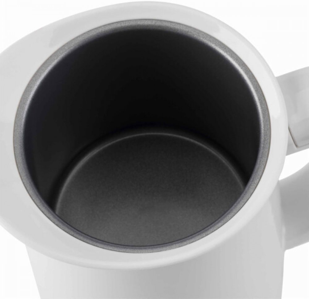 Objem: 240 ml Skryté topné těleso. Snadné čištění Min & Ukazatel maximální hladiny Rukojeť a tělo proti opaření Udržuje teplotu mléka na 65°C ( 5°C) Vypínač napájení Kontrolka provozu Automatické vypnutí Ochrana proti přehřátí Použití akumulátorové konvice Lapač kabelu Napětí: 230 V Výkon: 400 W