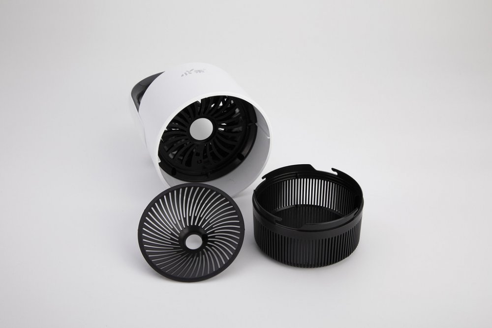 Tichý. Napájení pomocí USB kabelu. Vyjímatelný zásobník.