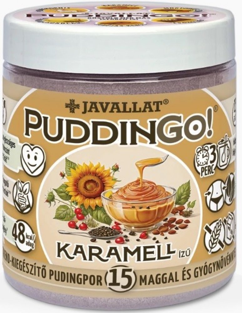 Veganský pudinkový prášek s karamelovou příchutí, na bázi semen a bylin, bohatý na rostlinné bílkoviny, vlákninu a minerály. Pudink obsahuje také bylinky, které mají řadu příznivých fyziologických účinků.