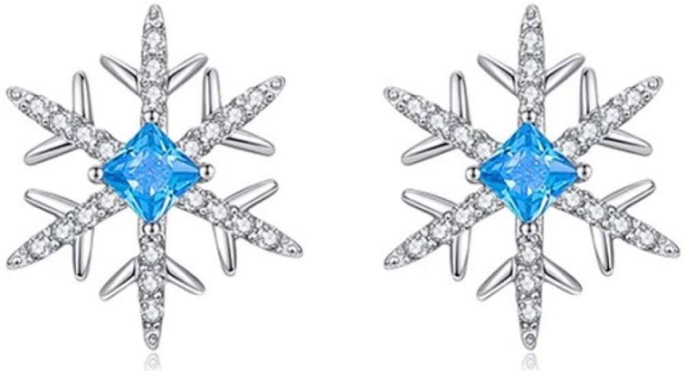 Tyto elegantní náušnice ve tvaru sněhové vločky jsou dokonalým doplňkem pro zimní sezónu. Jemné a detailní zpracování vytváří křehký dojem skutečné sněhové vločky, která se třpytí díky zářivým kamínkům. Modrý krystal ve středu náušnic dodává jiskru, která evokuje mrazivou krásu zimy.