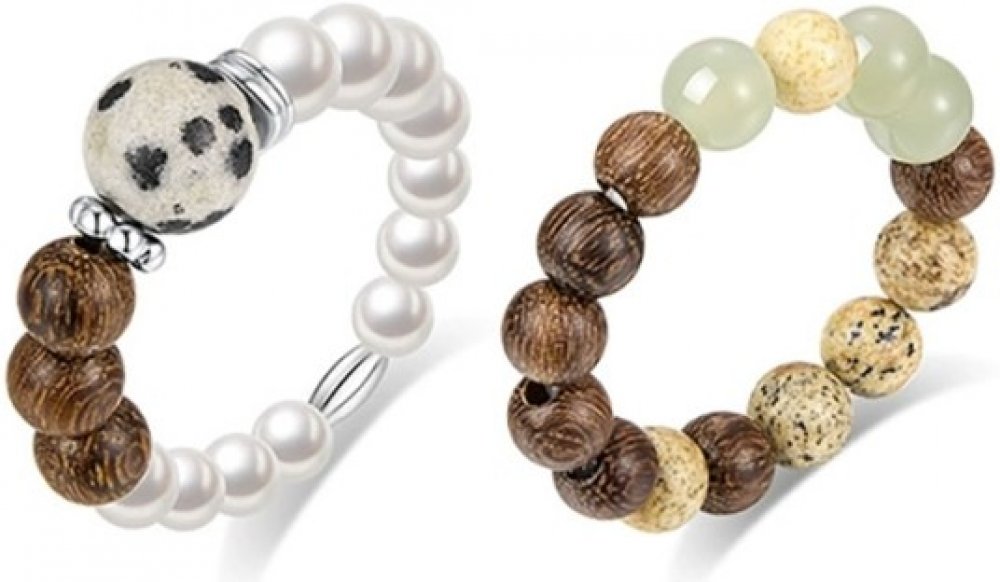 JAY Sada dvou prstýnků santalové dřevo nefrit perly JAY 9213
