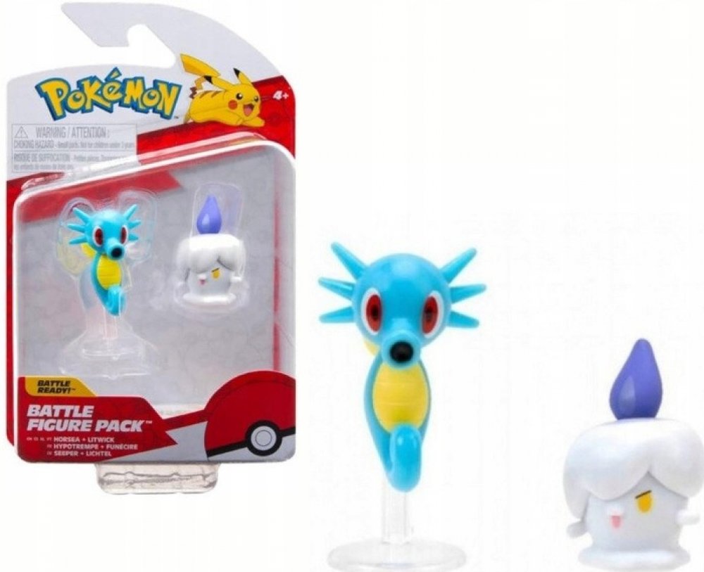 Pokémon Bojová figurka - Horsea & Litwick Pokémon Bojová figurka – Horsea & Litwick (2 ks)Malí, ale silní! Dvojice Horsea a Litwick přináší kouzlo a akci do každé Pokémon sbírky. Tyto bojové figurky jsou ideální pro hraní i vystavení – připravené na souboje, výstavy nebo jako dekorace pro každého trenéra.
