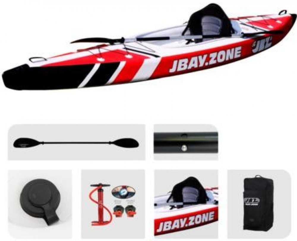 Polouzavřená konstrukce dává nafukovacímu kajaku V-Shape Mono vzhled velmi podobný pevnému kajaku. Díky technologii Drop-Stitch je srovnatelný i výkon. Vysoký tlak nafouknutí 12 psi umožnil vytvořit nafukovací, pevný a vysoce výkonný kajak, který lze snadno kamkoli přepravit a který lze uložit do batohu, takže nezabere mnoho místa. Ploché dno nafukovacího kajaku V-Shape Mono pomáhá zvýšit stabilitu při výletech na řekách s mírnými proudy, v mořských zátokách a jezerech. Poměr mezi délkou a šířkou lodi umožňuje udržet dobrou stabilitu, aniž by to příliš znevýhodňovalo maximální dosažitelnou rychlost. Udržování směru pomáhá středové prkno - které lze demontovat. Celková přepravní hmotnost nafukovacího kajaku V-Shape Mono je 159 kg. Pro zvýšení bezpečnosti při plavbě byl na dno kajaku namontován ventil pro rychlé vypouštění vody, který v případě potřeby optimalizuje vyprázdnění trupu. Dodávané sedadlo je vysoce kvalitní a pohodlnější než u klasických nafukovacích kánoí. Instalace sedačky je jednoduchá: připevňuje se k trubkám kajaku V-Shape Mono pomocí speciálních nastavitelných popruhů. Na zádi a přídi nafukovacího kajaku V-Shape Mono jsou namontovány praktické úchyty na přenášení a elastické popruhy pro bezpečnou přepravu vybavení během výletu. Kajak vždy přitahoval mnoho sportovců a příznivců se smyslem pro dobrodružství a přírodu ve všech jejích podobách. Od zrodu tohoto druhu plavidla až do současnosti byl technologický vývoj konstrukčních metod rozmanitý a důležitý. Tento vývoj vedl k revoluci v oblasti nafukovacích kajaků, které se díky spolehlivým a kvalitním konstrukčním postupům mohou nyní ve všech ohledech srovnávat s pevnými kajaky. Nafukovací kajaky si však oproti pevným kajakům zachovávají typické vlastnosti nafukovacího vybavení, jako je velká snadnost přepravy a absence údržby. Základní parametry: Rozměry 80 cm x 385cm Délka: 385 cm Max tlak: 12psi/0,82Bar Nosnost: až 159 Kg Váha: 15,8kg EAN: 8056518103209 Součást balení: - Pumpa: 2,0bar/ 29psi (dvojčinná pumpa) Bravo (Ruční Pumpa) Bravo® 2x2000 cm3 speciální pro SUP, ideální pro vysokotlaké ventily s bajonetovou spojkou. Volba režimu Single-Action Double-Action) - Přenosná taška: součástí dodávky (JBAY.ZONE Prémiová přepravní taška je ideální pro přenášení kayaku – na kolečkách) - SEDADLO: polyesterové sedátko JBAY.ZONE, které je pohodlné a praktické, se připevňuje k ocelovým D-kroužkům na vnitřní straně nafukovacích trubek. - Sada na opravu: Součástí dodávky (Praktická opravná sada s laminovanou PVC záplatou (neobsahuje lepidlo) k drobným opravám proděravění nebo poškození vnější vrstvy materiálu) - Pádlo: Dvoulisté pádlo s trojdílnou hliníkovou rukojetí o celkové délce 230 cm.