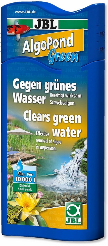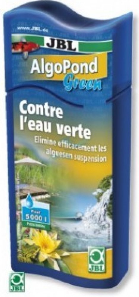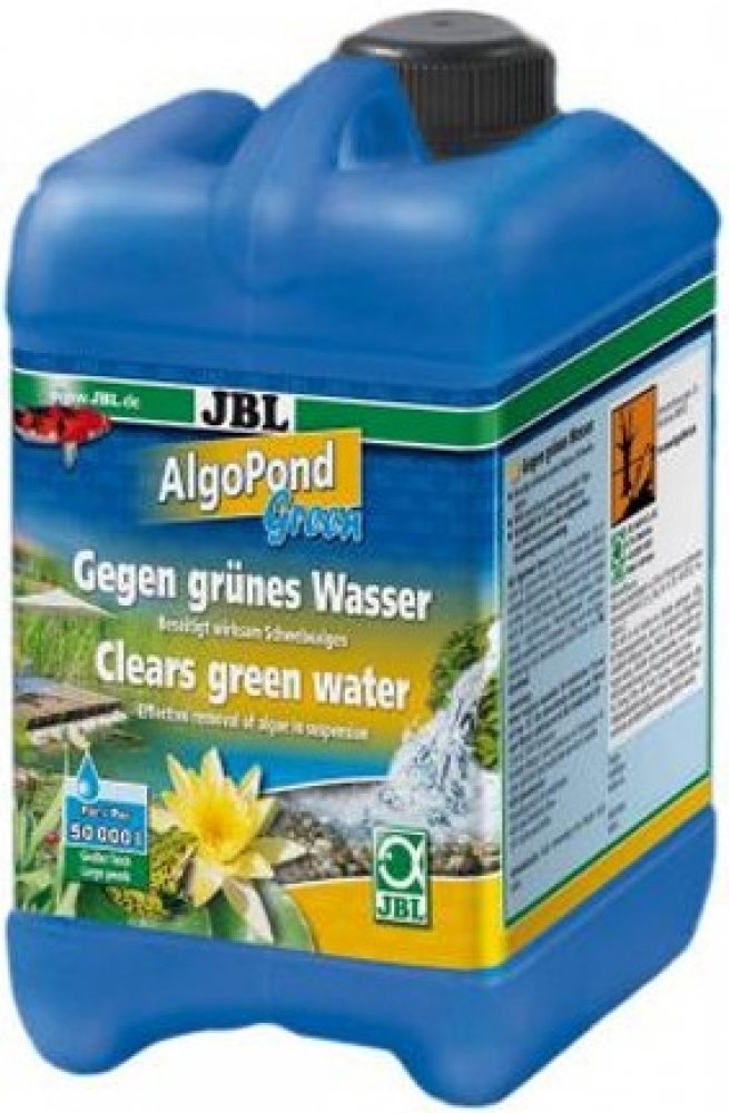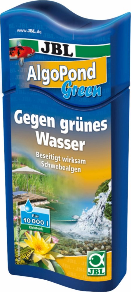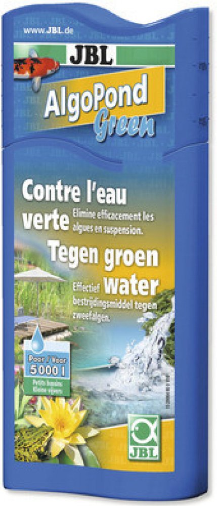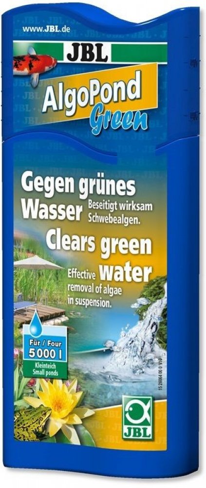 JBL AlgoPond Green je přípravek na úpravu vody k likvidaci plovoucích řas v jezírku. Pro vodu vhodnou pro ryby a rostliny. AlgoPond Green likviduje velmi účinně vláknité řasy v zahradním jezírku (příčinu zeleného zakalení). Likviduje buňky řas během několika málo dní.