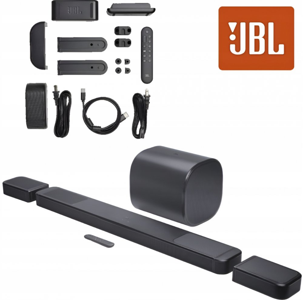 Sada soundbaru JBL BAR 1300MK2 s odnímatelnými bezdrátovými zadními reproduktory a výkonným subwooferem zajišťuje realistický 3D prostorový zvuk. Díky maximálnímu výkonu 2470 W a konstrukci bez kabelů získáte skutečně filmový zvukový zážitek v obývacím pokoji.