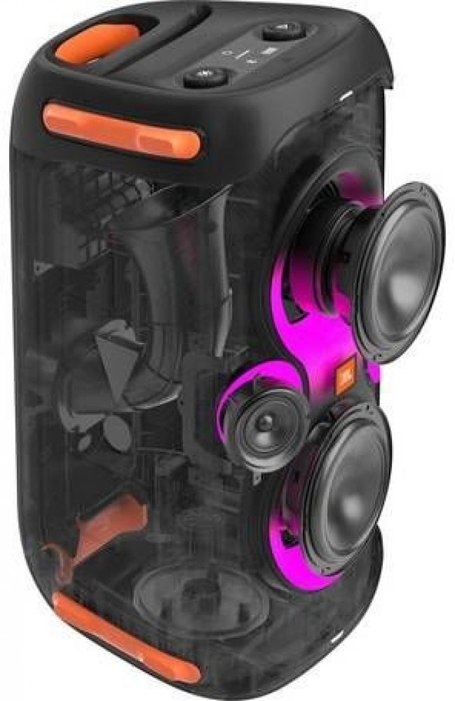 Vaše párty získá úplně novou dimenzi díky jedinečným dynamickým LED světelným efektům, které září v rytmu výkonného zvuku a hlubokých basů PartyBox 110. JBL PartyBox 110 je odolný proti postříkání vodou, takže si jej můžete vzít s sebou kamkoli, zatímco možnost připojit k reproduktoru kytaru nebo mikrofon vám přináší neopakovatelné hudební zážitky. Díky výkonnému zvuku JBL Original Pro Sound si užijete svou hudbu pořádně nahlas a basy můžete navíc ještě zvýraznit pomocí funkce Bass Boost, takže spolu s přáteli hudbu nejen uslyšíte, ale i ucítíte. Přehrávat vydrží PartyBox 110 až 12 hodin, aby vaše párty mohla pokračovat dlouho do noci. A pomocí aplikace PartyBox získáte jednoduchou kontrolu všech funkcí, zatímco bezdrátově přehráváte své oblíbené písničky.