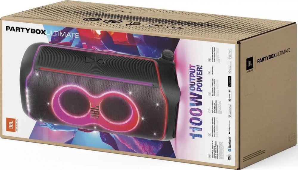 JBL PartyBox Ultimate naplni veskery prostor okolo vyjimecnym zvukem Original JBL Pro Sound, doplnenym nyni take o pohlcujici hudebni zazitek s Dolby Atmos pri prehravani pres WiFi. Protoze kazdy na party miluje silny zvuk, at uzsi ho uziva primo na tanecnim parketu, nebo si vychutnava atmosferu mimo nej. Spolu se zvukem, ktery je krystalicky cisty i pri nejvyssi hlasitosti, budou vasi hoste nadseni i z velkolepe, dechberouci svetelne show plne podmanivych hvezdnych svetel, oslnivych svetelnych stop a stroboskopickych efektu, synchronizovane s rytmem vasi hudby. Vyberte si vas oblibeny party playlist a jednoduse ho streamujte. Nebo to muzete rozbalit primo na podiu diky vstupum pro dva mikrofony a kytaru. A diky zabavnym interaktivnim efektum, ktere prinasi JBL PartyPad™, si uzijete party presne ve vasem stylu za vsech okolnosti. Planujete jeste vetsi akci? Promente svou party v opravdu velkolepou udalost. Bezdratove sparovani a pripojeni vice reproduktoru si jednoduse nastavite a prizpusobite pomoci aplikace JBL One. JBL PartyBox Ultimate je odolny proti postrikani vodou a vybaveny funkci automatickeho ladeni, takze at ho umistite kamkoli, vzdy bude znit dokonale. Predstavte si tu nejuzasnejsi party vubec – a pak ji prekonejte. Protoze presne k tomu je JBL PartyBox Ultimate stvoren