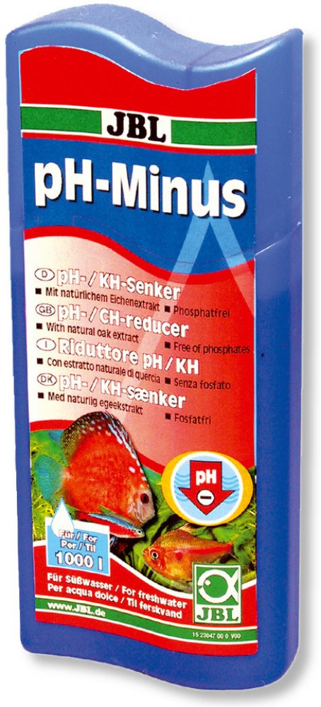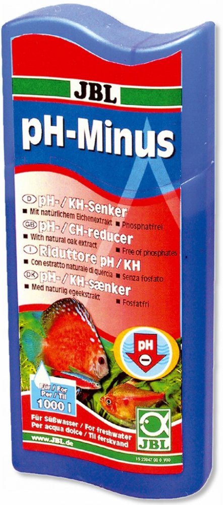 Přípravek ke snížení pH s extrakty dubových tříslovin. Preparát slouží ke snížení nežádoucích vysokých hodnot pH vody v akváriu. Účinek je možné kontrolovat JBL setem ke stanovení pH.Neobsahuje fosforečnany (fosfáty).Možnou přítomnost vápence v dekoračních kamenech zjistíte kapkou preparátu na kámen – vytvoření pěnyprozrazuje vápenec. 100 ml - 400 L 250 ml - 1 000 L