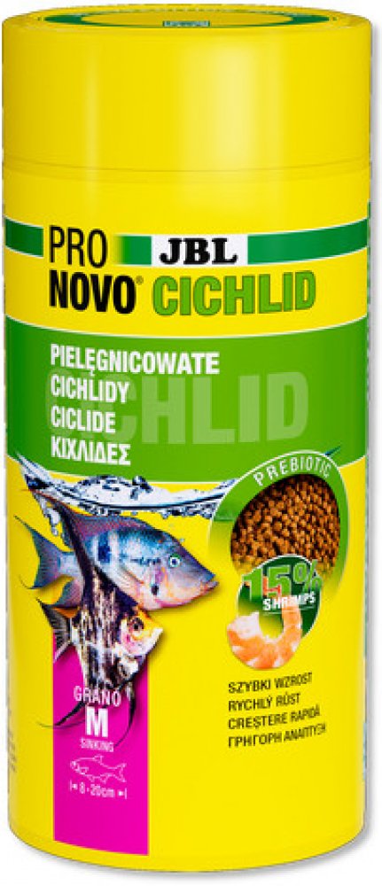 Probiotické krmivo pro ryby, klesající: vlákniny v krmivu jsou zdrojem střevních bakterií pro zdravé trávenípřírodní látky bez umělých přísad pro přirozenou výživu a zdraví vrubozubcovitých. Testováno na výzkumných expedicích jbl v tropechvelmi vysoká akceptance i u vybíravých cichlid díky kvalitním surovinám, jako jsou losos a garnátis velmi kvalitním přírodním astaxantinem z krunýřovek a řasy spiruliny dokonalé zbarvení u cichlid, jako je např. Kančík červenohrdlýrozsah dodávky: originální uzavřený, vzduchotěsný obal chráněný před světlem, recyklovatelný s dávkovačem ve víčkusložení:hrubá bílkovina (42.0%)obsah tuku (8.0%)hrubá vláknina (4.0%)surový popel (8.0%)