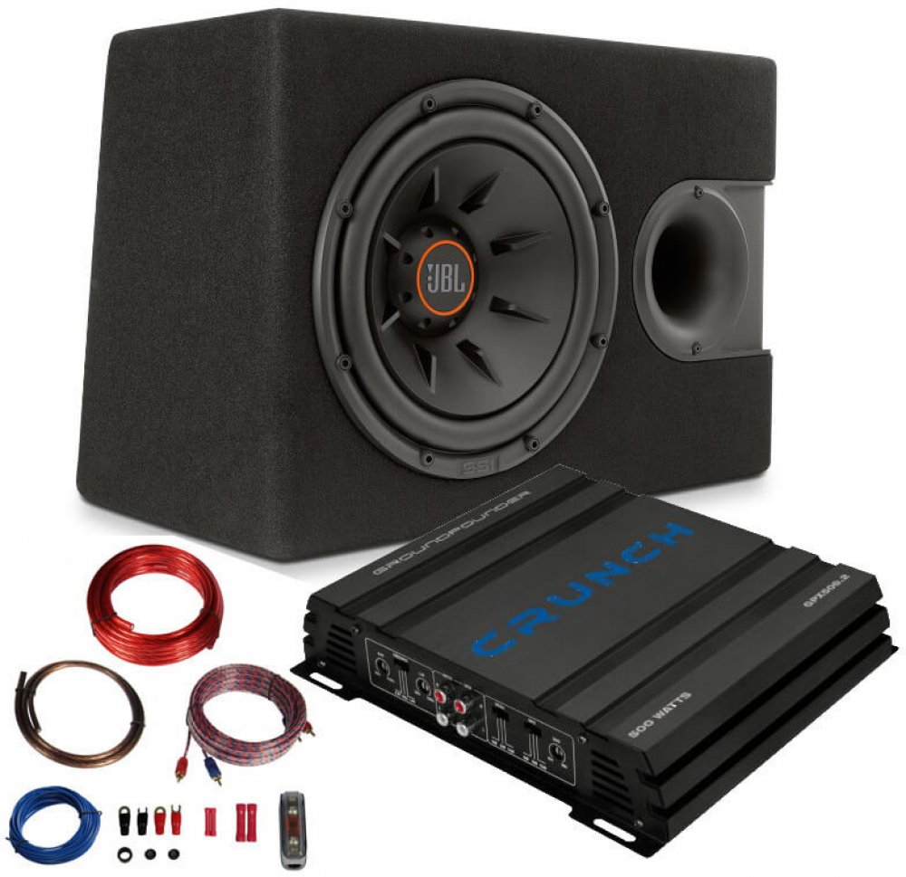 JBL S2-1224SS + Crunch GPX 500.2 + kabelová sada Four Connect Stage1 KIT 10 je akční cenově výhodný set složený z 12" subwooferu v bassreflexovém boxu JBL S2-1224SS, dvoukanálového analogového zesilovače Crunch GPX500.2 a 10 qmm napájecí sady Four Connect.
