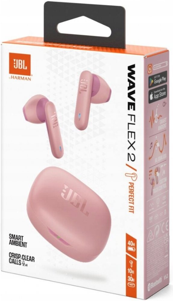 Užít si kvalitní zvuk je nyní jednodušší – a mnohem zábavnější. Sluchátka JBL Wave Flex 2 přináší vzrušující zvuk JBL Pure Bass a navíc i technologii Smart Ambient, díky které jednoduše ovládáte, jak moc uslyšíte svět okolo vás. Hands-free hovory budou naprosto jasné a čisté a ovládat je můžete snadno poklepáním na sluchátko. Aplikace JBL Headphones nabízí další možnosti, jak si upravit váš zvuk nebo třeba nastavit jazyk upozornění. Připojte se bezdrátově k až 8 různým Bluetooth® zařízením a přepínejte bez problémů z jednoho na druhé. Díky svému tvaru vynikají sluchátka JBL Wave Flex 2 pohodlným ergonomickým designem. A s výdrží baterie až 40 hodin jsou tato sluchátka skvělým zvukovým společníkem pro každý den.