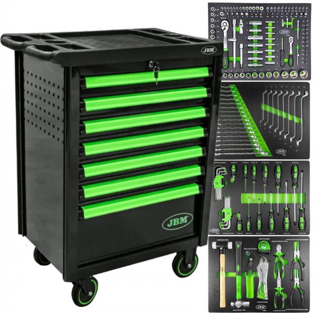 VYSOKÁ KVALITA - Odolné proti velkému zatížení - Lehké a snadno se přemisťují - Dobře organizované a uklizené nářadí v modulech EVA - Robustní a odolná konstrukce Celková velikost: 750 x 515 x 842 mm Celková velikost s kolečky: 750 x 515 x 997 mm 6x zásuvka: 533 x 400 x 74 mm 1x zásuvka: 533 x 400 x 153 mm Velikost kolečka: 5" Dodáváno s nástroji v modulech s povrchovou úpravou z uhlíkových vláken (172 KS): Ref: 14296 108 KUSOVÝ SADA ZÁSUVEK 1x SADA NÁŘADÍ/2" TRAY univerzální ráčna s nástrčkovým vyhazovačem. 1x 1/2"*5/16" hlavový adaptér. 5x 1/2" dlouhé 12ti bodové nástr. Rozměry: 14, 15, 17, 19 a 22 mm. 17x 1/2" metrické objímky. Rozměry: 10, 11, 12, 13, 14, 15, 16, 17, 18, 19, 20, 21, 22, 24, 27, 30 a 32 mm. 8x 1/2 "Zásuvky Torx. Rozměry: E10, E11, E12, E14, E16, E18, E20 a E24. 2x nástrčka na svíčky 1/2". Rozměry: 16 mm a 21 mm. 2x prodlužovací tyč: 5" a 10". 1x kardanový kloub 1/2". 1x 3/8" zásuvkový díl - 1/2" zásuvkový adaptér. 1x 1/4" univerzální ráčna s nástrčkovým vyhazovačem. 18x hlavy hrotového šroubováku: PH: #1, #2 / PZ: #1 a #2 / HEX: 3, 4, 5, 6 mm / SL: 4, 5,5 , 6,5 mm / TX: 8, 10, 15, 20, 25, 27 a 30 mm. 1x rukojeť šroubováku 1/4". 1x 1/4" kardanový kloub. 1x 1/4" posuvná rukojeť. 2x prodlužovací tyč: 2", 3". 13x metrické zásuvky. Rozměry: 4, 4,5, 5, 5,5, 6, 7, 8, 9, 10, 11, 12, 13 a 14 mm. 8x 1/4" dlouhá objímka. Rozměry: 6, 7, 8, 9, 10, 11, 12, a 13 mm. 8x 1/4" Torx hlavice. Rozměry: E4, E5, E6, E7 a E8. 17x hlavice (8 mm): HEX: 7, 8, 10, 12, 14 mm / SL: 8, 10, 12 mm / PH: #3, #4 / PZ: #3, #4 / TX: 40, 45 , 50, 55, 60 mm. 3x imbusový klíč: 1,5, 2, 2,5 mm. 1 přihrádka na modul Ref: 14297 25 KUSOVÁ SADA KLÍČŮ ZÁSOBNÍK S PEVNÝM KLÍČEM MODUL - 6x7mm až 18x19mm + 20x22mm. MODUL KOMBINOVANÝCH KLÍČŮ - 6 až 22 mm. Ref: DRÁŽKOVANÝ ŠROUBOVÁK - 5 X 75MM DRÁŽKOVANÝ ŠROUBOVÁK - 6X100 mm DRÁŽKOVANÝ ŠROUBOVÁK - 8X150 mm DRÁŽKOVANÝ ŠROUBOVÁK SL10 X 200 SADA 9 IMBUSOVÝCH KLÍČŮ "L" VE TVARU L4X SADA 299 KRUHOVÝCH KLÍČŮ Ref. SADA KLADIVA A KLEŠŤACÍ PLACHTA s kuličkovým perem nainstalujte kladivo Nastavitelné kleště 10” 8” vnitřní kleště na pojistné kroužky ( rovné hroty) 8” kleště na vnější pojistné kroužky (rovné hroty) zajišťovací kleště 10” diagonální kleště 7,5” dlouhé kleště 8” měřicí páska 3m
