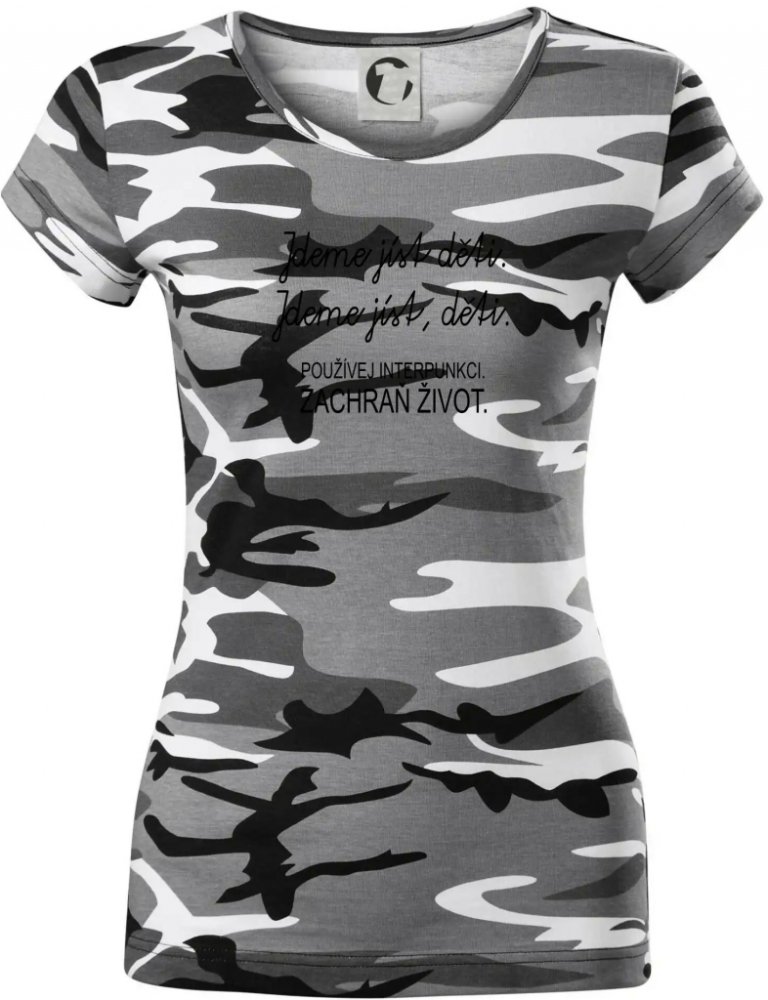 Jdeme jíst děti Dámské maskáčové triko Šedý maskáč