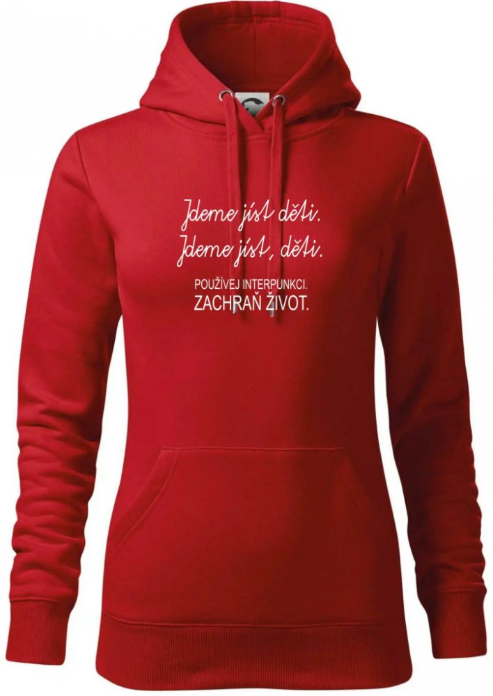 Jdeme jíst děti mikina dámská Cape s kapucí Červená