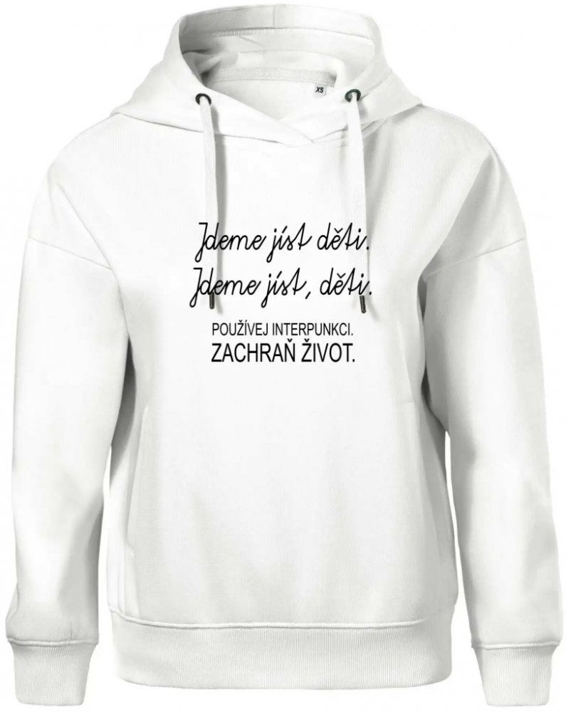 Jdeme jíst děti Oversized mikina dámská Moon kratší + širší Bílá