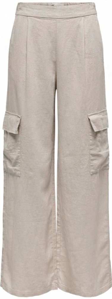 KAPSÁČOVÉ LNĚNÉ KALHOTY DÁMSKÉ JdY: kapsáčové (cargo look) lněné kalhoty dámské s vysokým pasem směs viskózy a lnu zajišťuje komfort při nošení - látka neškrábe a je prodyšná rovné a široké nohavice s výraznými bočními kapsami sklady na přední straně nohavic přírodní světle béžová barva s melírem vzadu v pase guma pro dokonalé přilnutí k tělu kapsy: 2x přední, 2x boční na nohavicích pokud ráda nás...