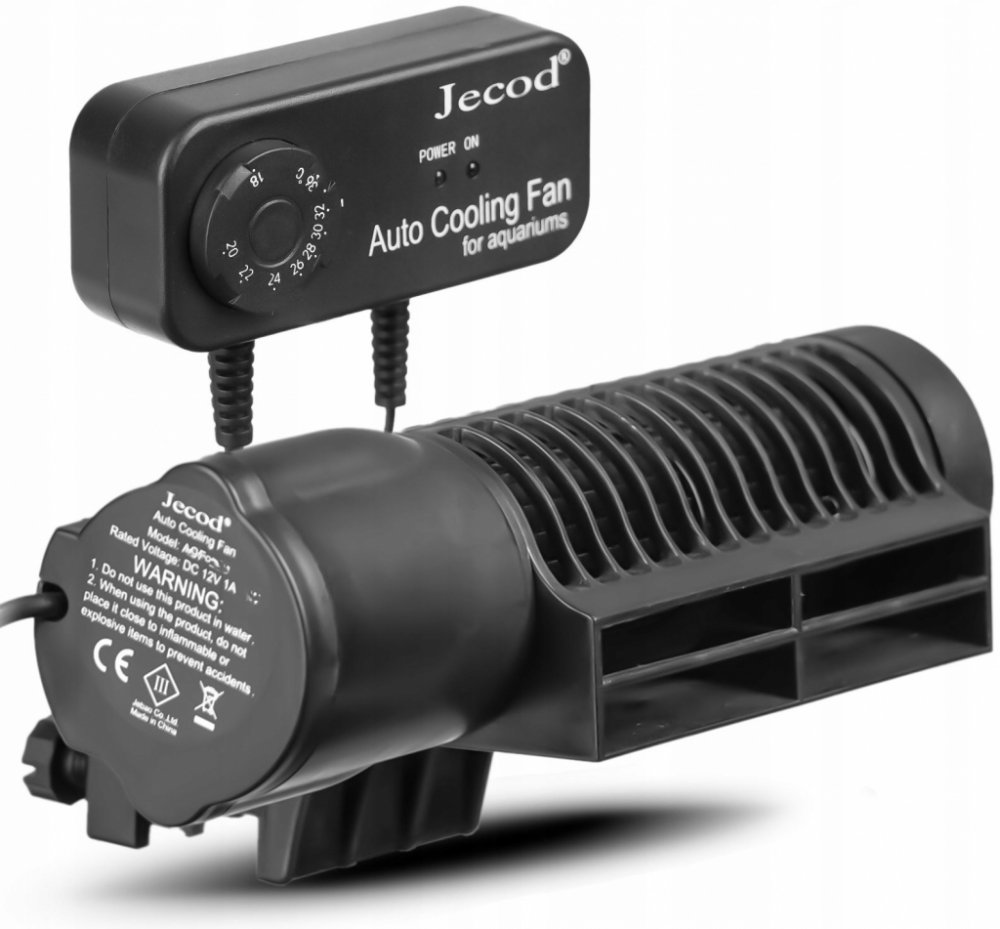 Výjimečná konstrukce chladicího ventilátoru pro akvárium. Umožňuje snížit teplotu vody během letních veder. Plochý tvar a držák na sklo umožňuje snadné a diskrétní namontování zařízení. Zvláštní pozornost si zaslouží termostat s regulační sondou pro ventilátor. Rozsah provozu termostatu je od 18 °C do 36 °C.
