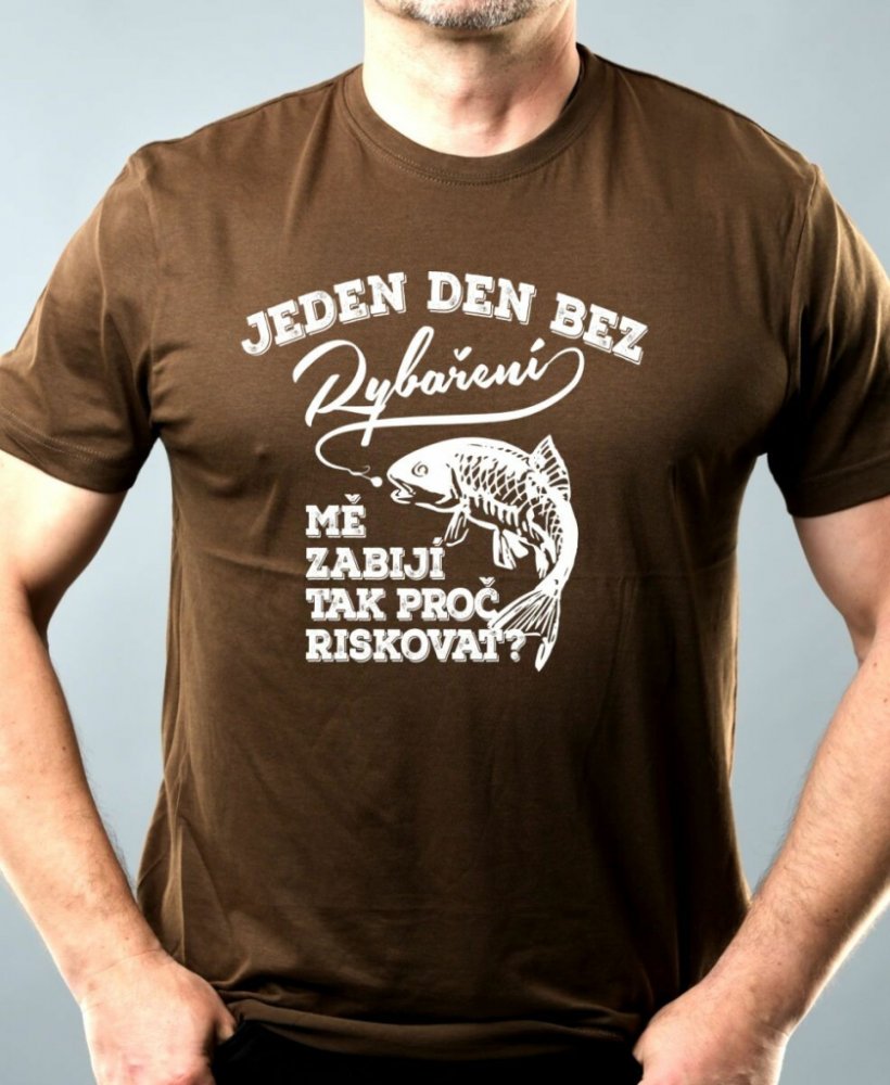 Jeden den bez rybaření mě zabíjí, tak proč riskovat.Tričko, mikina, kšiltovka, zástěra, tílko, hrnek, půllitr, plechový hrneček.