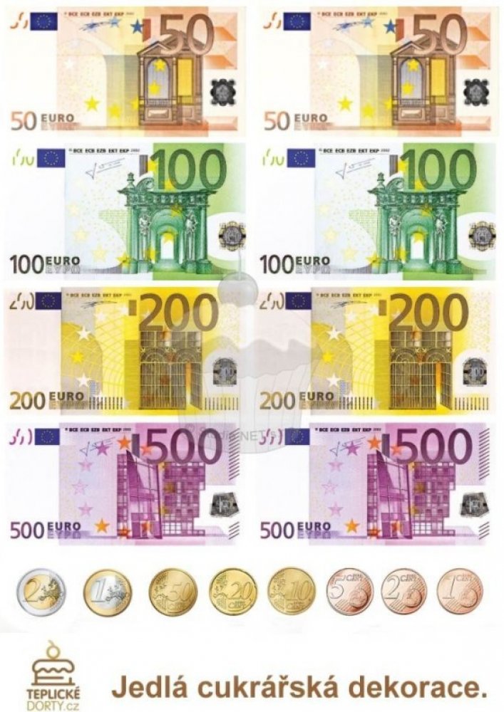 Tištěno technologií Canon a jedlými barvami: Voda, zvlhčovadla E1520, E422; barviva E133, E122, E102, E151, E110.