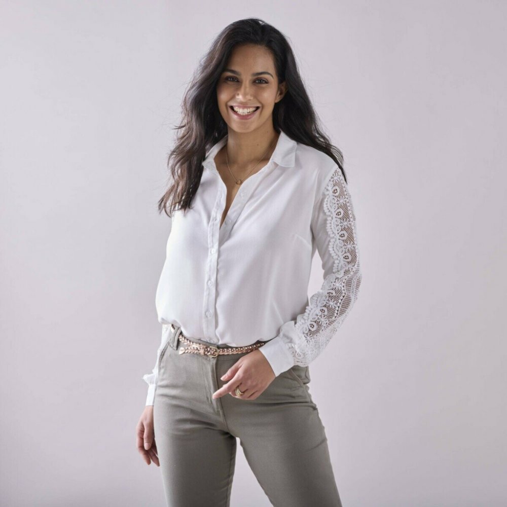 Nadčasová košile s krajkou snadno doplní oblíbené džíny i sukni. Košilový límeček. Vpředu knoflíková léga. Prsní záševky. Dlouhé rukávy. Manžety na knoflík. Vzadu přestřižení a sklady. Zakulacený dolní lem. Krajka. Společnost Blancheporte zvolila recyklovaný polyester, čímž přispívá k boji proti plýtvání a podporuje odpovědnější spotřebu, která respektuje životní prostředí. Lze prát v pračce.