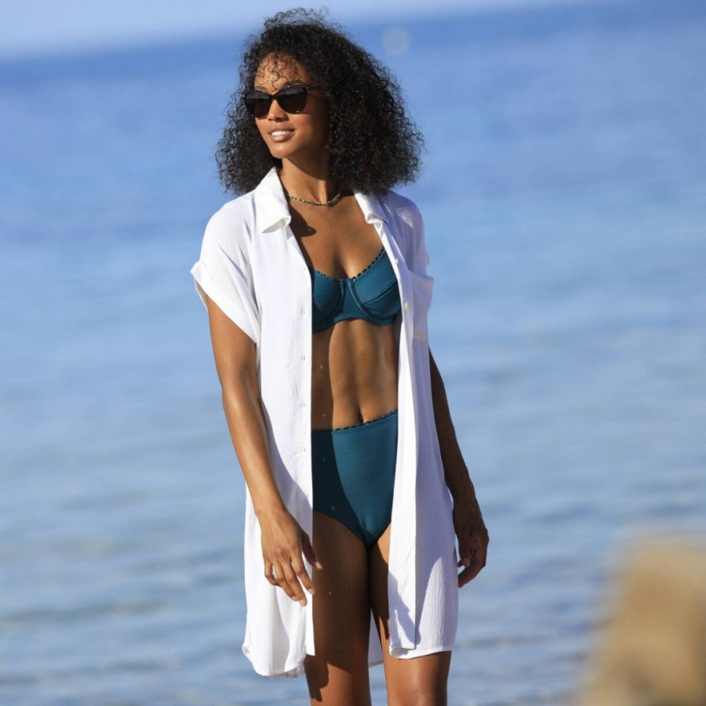 Jednobarevné plážové šaty ve volném střihu se postarají o pohodlné nošení. Lehký krepon. Košilový límeček. Knoflíková léga, perleťové knoflíčky vpředu uprostřed. Krátké rukávy zakončené ohrnutím. 1 náprsní kapsa. Zakulacený dolní lem. Lze prát v pračce.