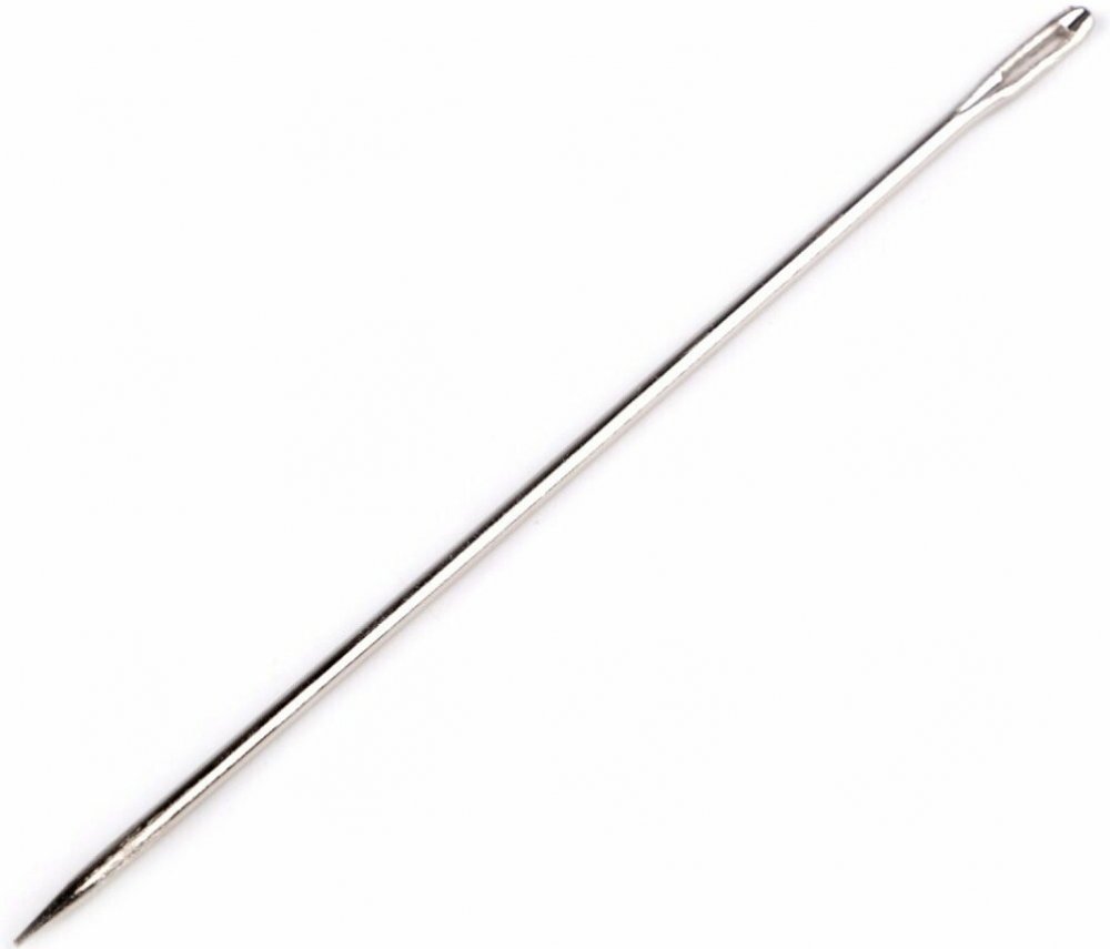 Dlouhá čalounická jehla má velké ouško a tupou špičku.