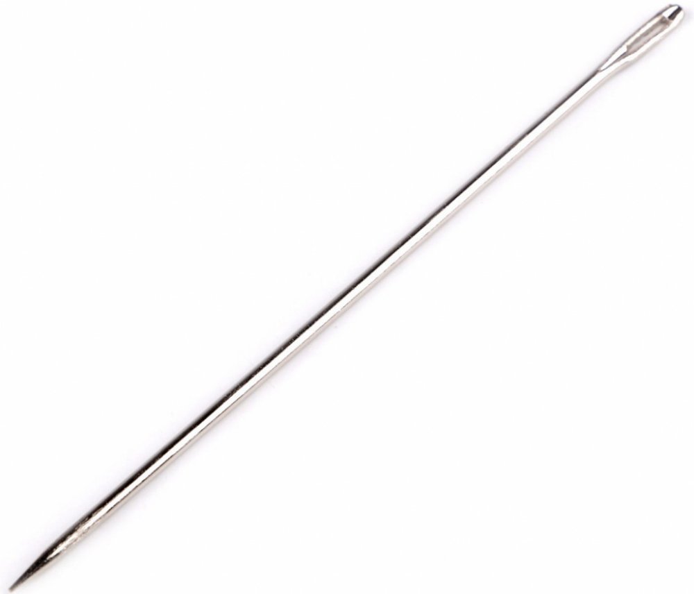 Dlouhá čalounická jehla má velké ouško a tupou špičku. Používá se k sešívání hrubých materiálů, pytlů.