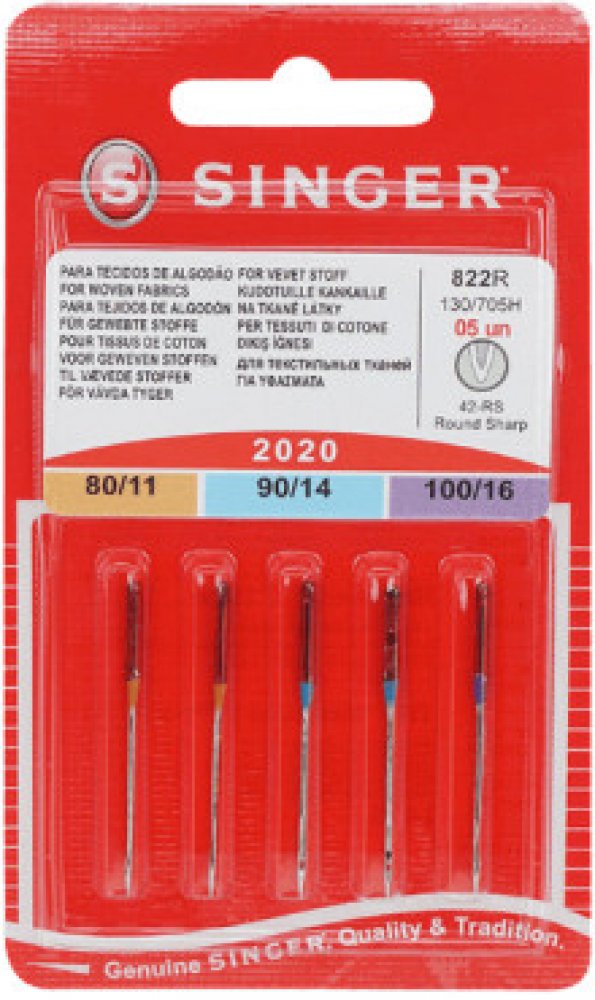 Značkové jehly Singer jsou vyrobeny z nejkvalitnějších materiálů, špičkovou technologií. Tvarové řešení jehly Singer je výsledkem dlouhodobých výzkumů. Jehla má vybrání nad ouškem pro optimální vedení nitě a zmenšení odporu při průniku materiálem. Dřík jehly je zakončen malou ploškou jednoznačně orientující jehlu a usnadňující její montáž do stroje.