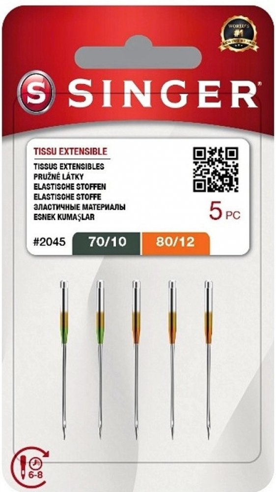 Značkové jehly Singer jersey pro domácí šicí stroje, mix 5ks, síla jehly je 70/10 (2x), 80/12 (3x), značení 130/705 H-S. Tyto jehly můžete použít i na stroje jiných značek, např. Janome, Brother, Lada, Juki, Lucznik, Veritas, Pfaff, Husqvarna-Viking, Texi, atd. Vhodné pro stroje SINGER: MA, MB, MC, CA, CB, CC, CE, EA, EB, EC Značkové jehly Singer jersey pro domácí šicí stroje, jehla s ploškou, mix balení po 5 kusech, síla jehly je 70/10 (2x), 80/12 (3x), značení 130/705 H-S. Povrch jehly je zinkovaný. Hrot jehly je zakulacený, aby procházel tkaninou a nenařezával vlákna. Jehly jsou vhodné pro pružné materiály jako jsou úplety, jersey, trikot. Ve většině moderních materiálů jsou příměsi, většina moderních materiálů je pružná, elastická. I když pružné materiály se dají v omezené míře šít i klasickým zig-zag (cik-cak) stehem, opravdovou zábavu si však užijete se strojem, který již umí vázat elastické stehy. S jehlami v balení můžete šít především lehké materiály (velikost jehly 70/10) a středně těžké materiály (velikost jehly 80/12). Pro maximální výkon doporučuje společnost SINGER měnit jehlu každých 6-8 hodin šití. TIP: Značkové SINGER jehly pro klasické domácí šicí a vyšívací stroje nejsou zaměnitelné s jehlami pro overlock. Rozdílný design obalu SINGER nemá na kvalitu či původ výrobku jakýkoliv vliv. Pro maximální výkon doporučuje společnost SINGER měnit jehlu každých 6-8 hodin šití.