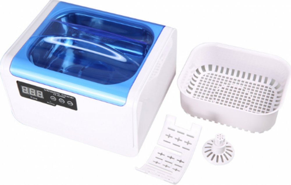 Příslušenství: plastový koš, držák na čištění řemínků hodinek, držák na čištění dvou CD nebo DVD.