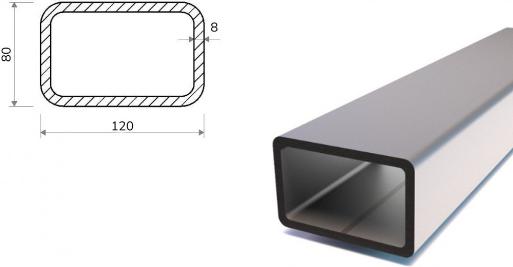 Jekl 120x80x8 (S355) je standardně svařovaný uzavřený ocelový profil obdélníkového tvaru válcovaný za studena jakosti S355. Široké spektrum využití ve stavebnictví a zámečnictví, a také v technických oborech. Tento obdélníkový jekl je dodáván ve výrobní délce 6 m s hmotností 124,50 kg a tloušťkou profilu 8 mm. Váha produktu na 1 m je 20,75 kg.