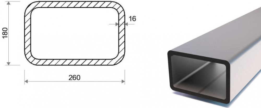 Jekl 260x180x16 (S355) je standardně svařovaný uzavřený ocelový profil obdélníkového tvaru válcovaný za studena jakosti S355. Široké spektrum využití ve stavebnictví a zámečnictví, a také v technických oborech. Tento obdélníkový jekl je dodáván ve výrobní délce 6 m s hmotností 614,94 kg a tloušťkou profilu 16 mm. Váha produktu na 1 m je 102,49 kg.