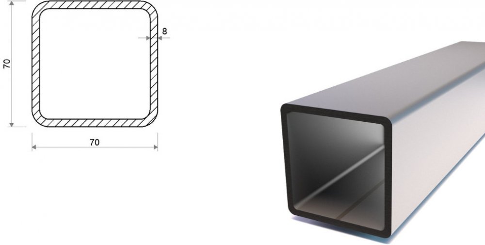 Jekl 70x70x8 (S355) je standardně svařovaný uzavřený ocelový profil čtvercového tvaru válcovaný za studena jakosti S355. Široké spektrum využití ve stavebnictví a zámečnictví, a také v technických oborech. Tento čtvercový jekl je dodáván ve výrobní délce 6 m s hmotností 50,4 kg, šířkou strany 70 mm a tloušťkou profilu 8 mm. Váha produktu na 1 m je 8,4 kg.