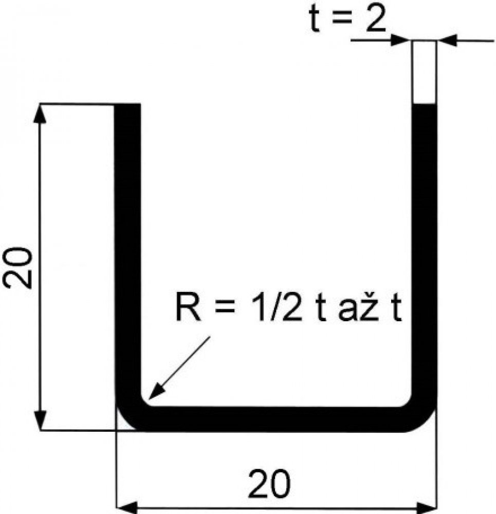 Jekl otevřený U 20 x 20 x 2 mm