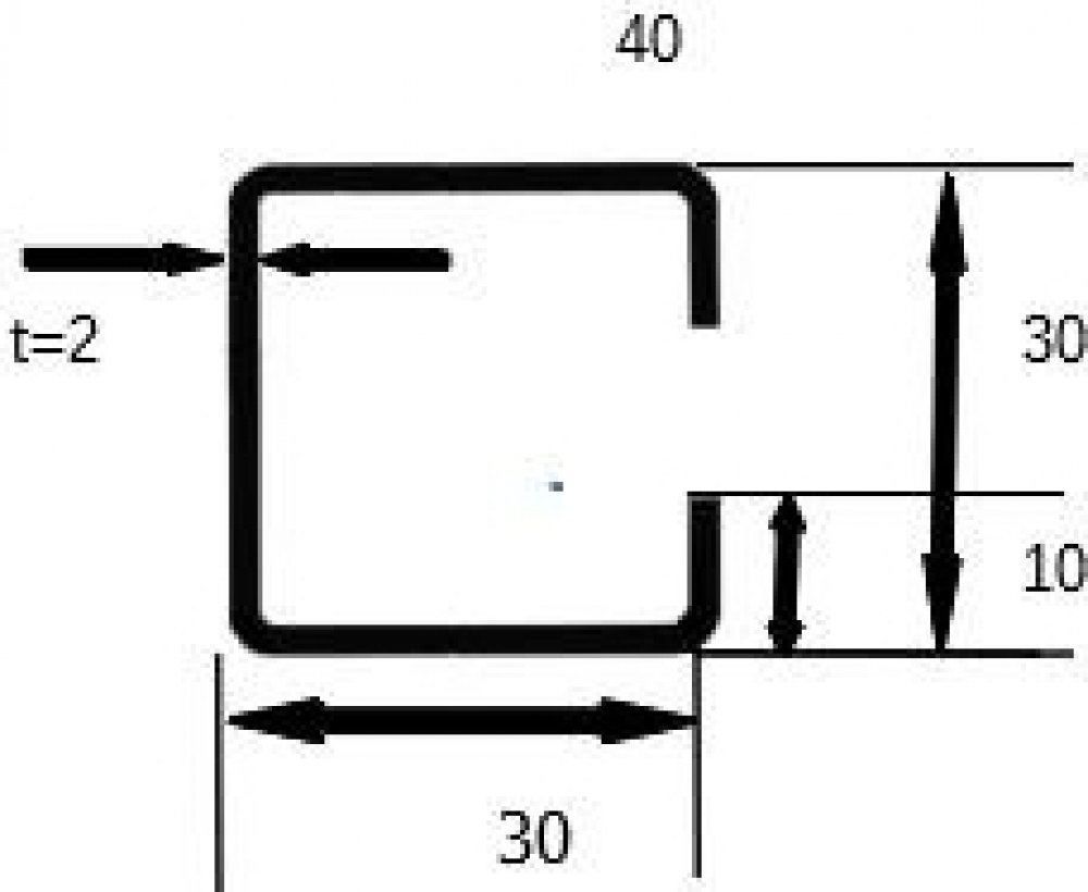 Ocelový jekl tvaru C 30x30x10,0x2 mm Profil svařovaný černý ve tvaru C 30x30x10x2 mm. Profily řežeme i pod úhlem. Výška profilu 30 mm Šířka profilu 30 mm Tloušťka stěny 2,0 mm Jmenovitý rozměr 10 mm Hmotnost 1,53 kg/m Jakost S235JR profil C 30x30x10x2 ocelový, dutý