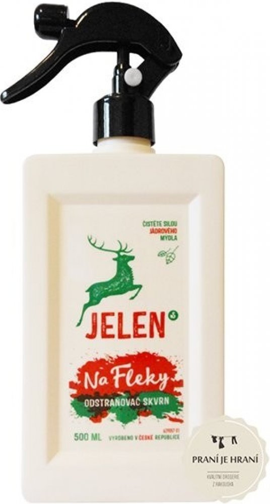Jelen Na Fleky je účinný odstraňovač skvrn, který si hravě poradí s fleky od kávy, čaje i make-upu. Nastříkejte prostředek přímo na skvrnu, nechte působit maximálně 10 minut a dál perte jako obvykle - s láskou. Dodržujte pokyny výrobce textilu. Chraňte všechny kovové části oděvů,knoflíky, zipy i nýtky.