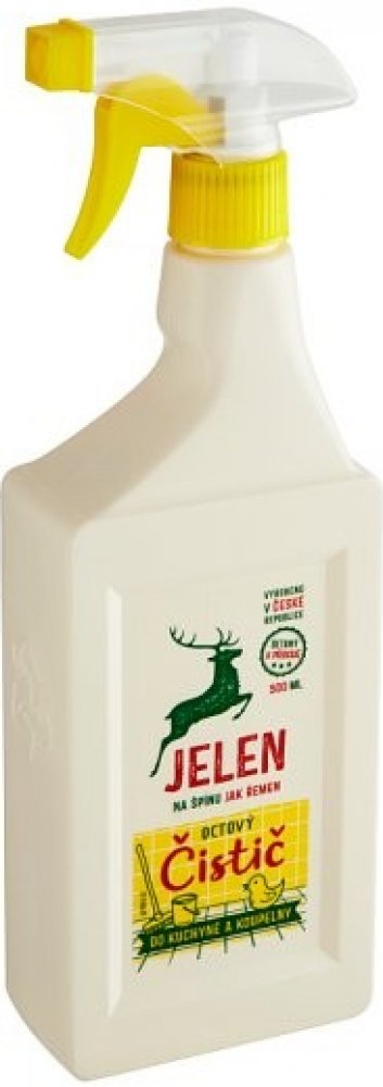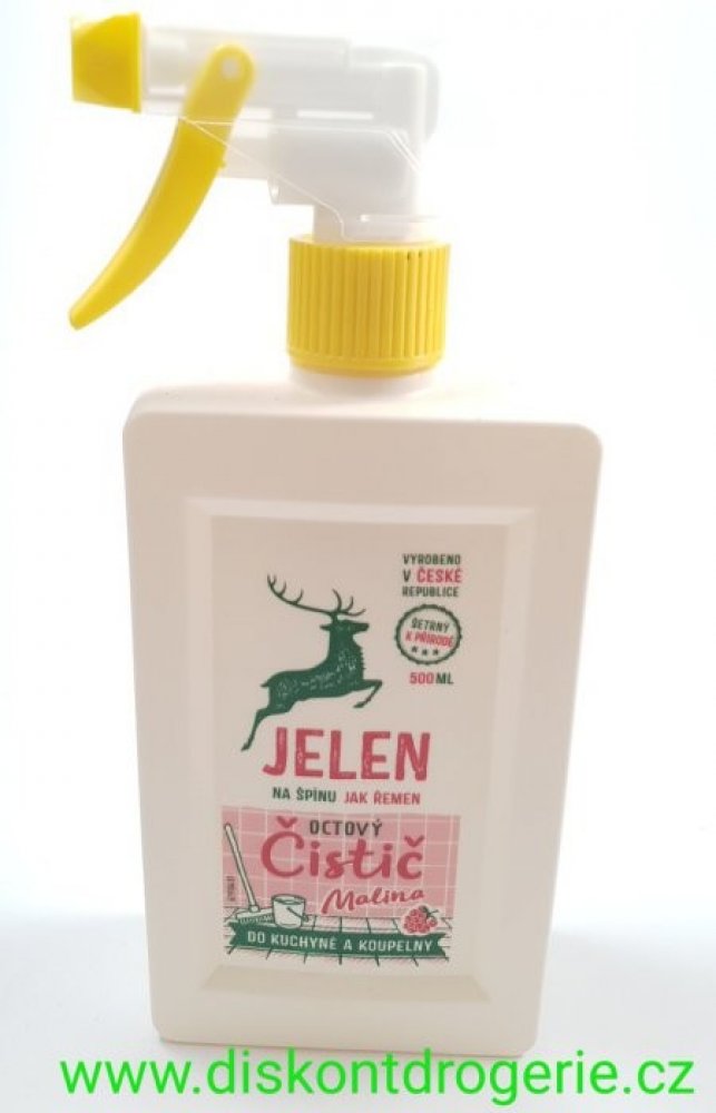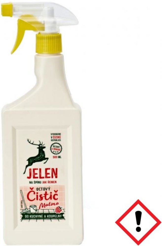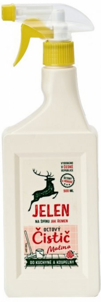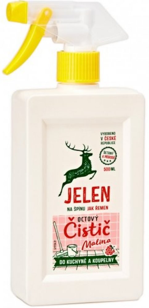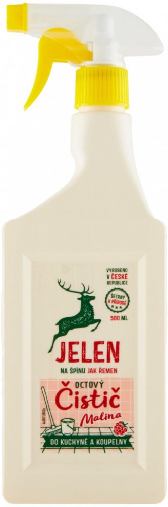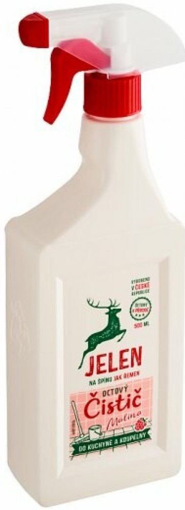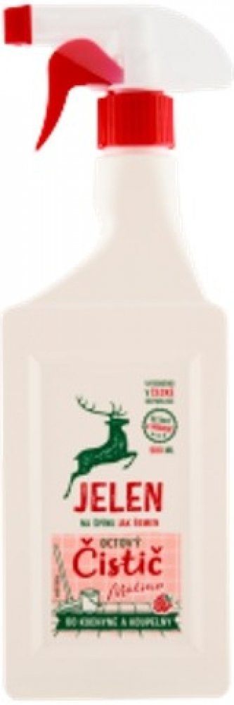 Jelen octový čistič na vodní kámen a urputnou špínu. S vůní malinového octa. Značka Jelen používá správné suroviny - k přírodě šetrné. Obaly jsou 100 % recyklovatelné. Jelen má hranaté obaly včetně láhví, které se lépe skladují. Produkty nejsou testovány na zvířatech.