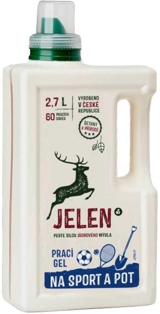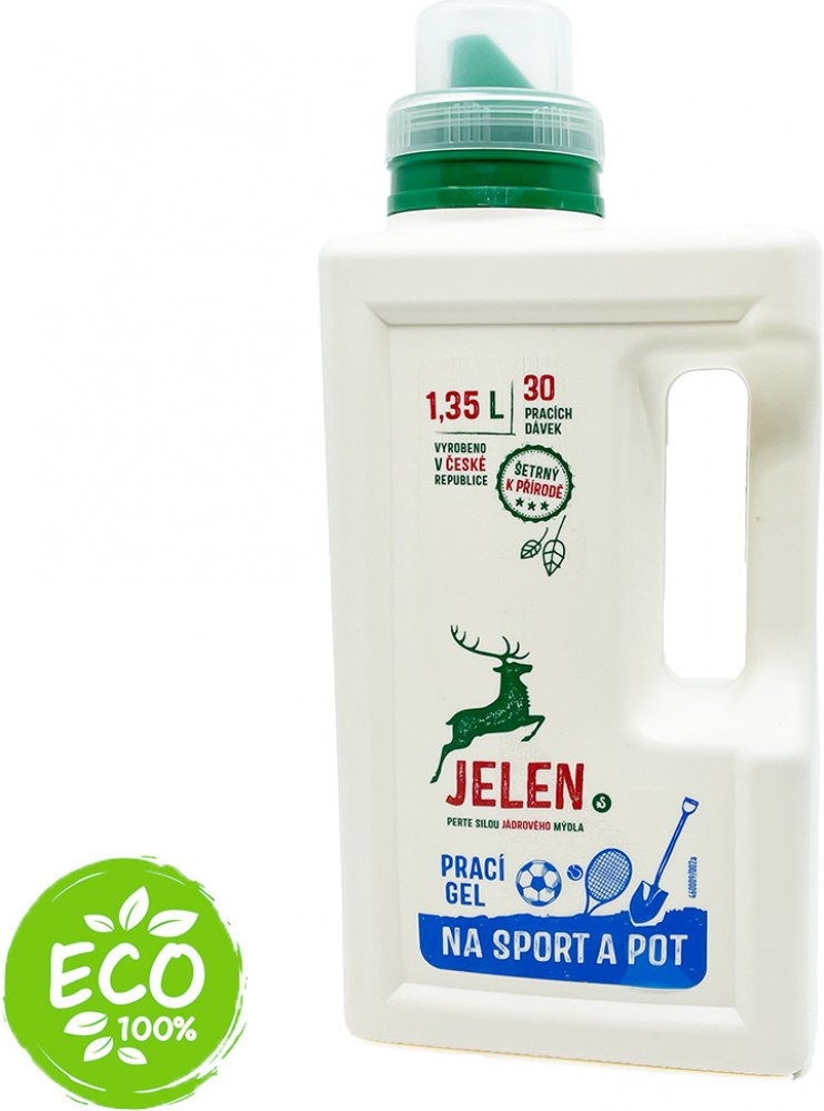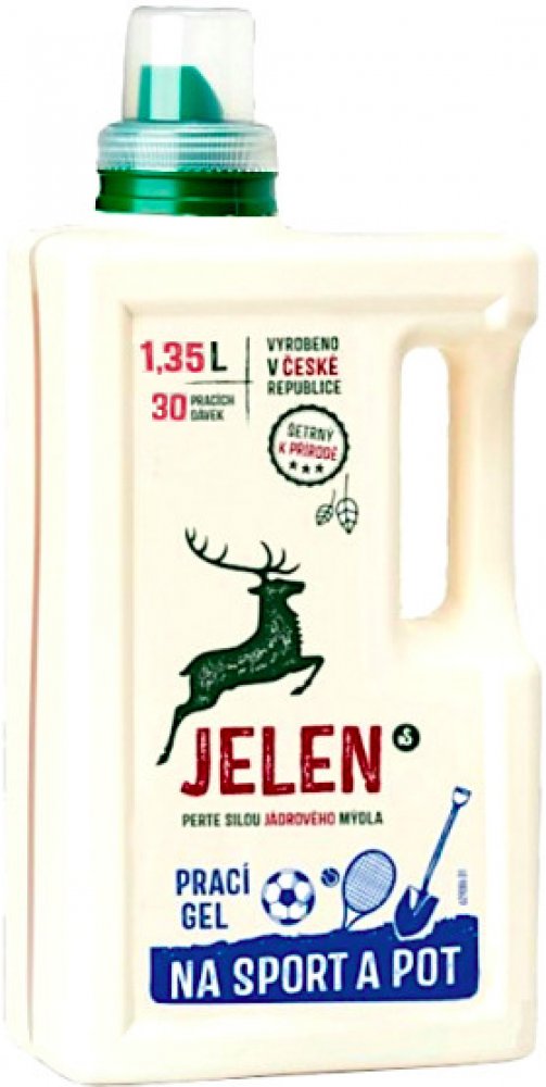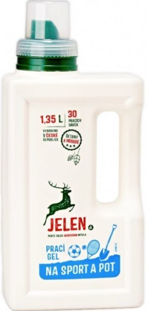 Hledáte eko prací gel, který vaše prádlo udělá svěžím, vyčistí ho a navíc bude šetrný k přírodě i vašemu zdraví? JELEN na sport a pot 1,35 l (30 praní) vám poslouží na sportovní oblečení. Nemusíte se s ním bát prát sportovní oblečení. Mezi jeho přednosti patří to, že je ekologický. Tento eko gel na praní je určen pro barevné prádlo.