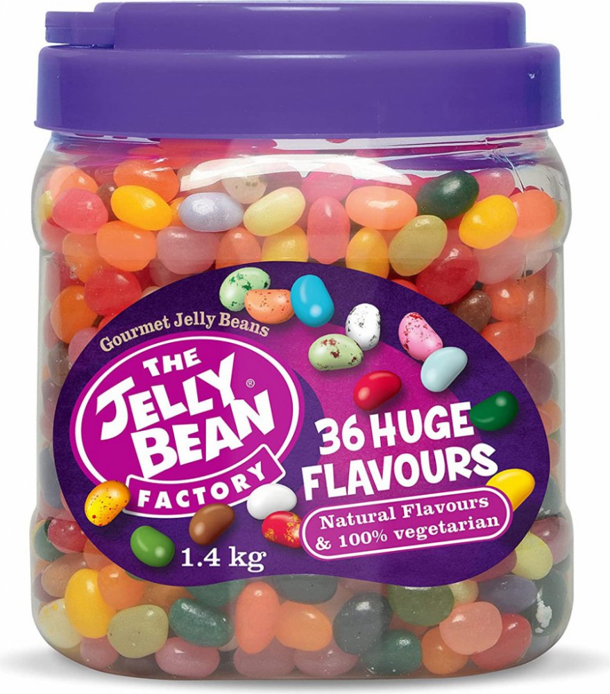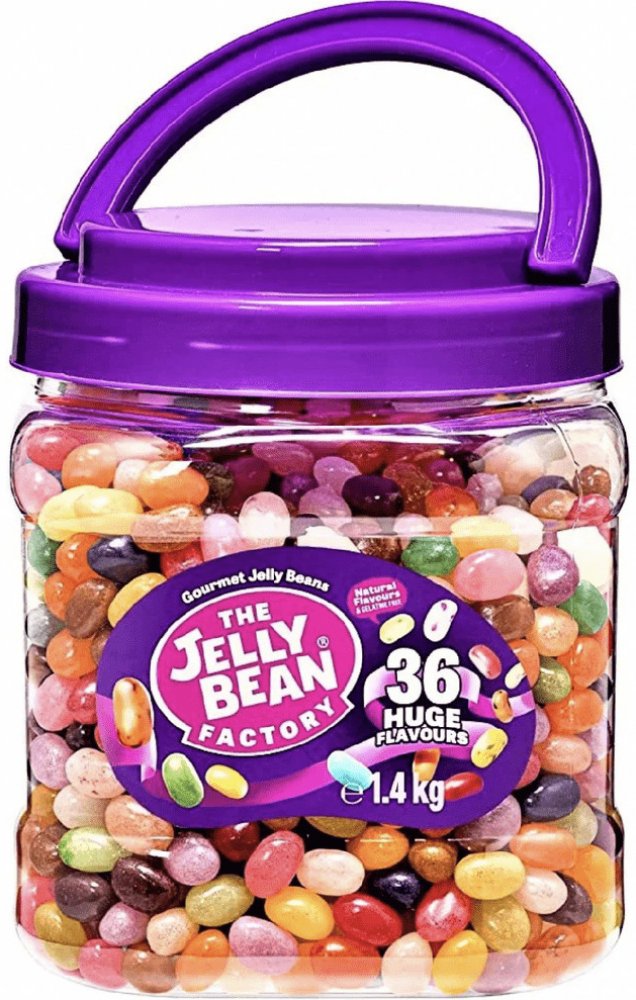 Obrovská dóza plná fantastických chutí Jelly Bean! Jelly Bean Gourmet Mix 1,4 kg je výhodné velké balení, které potěší každého milovníka sladkostí. Doslova koš plný barevných žvýkacích bonbonů s 36 jedinečnými příchutěmi – ideální na párty, do kanceláře, pro rodinu nebo jako sladká zásoba na dlouhé týdny.