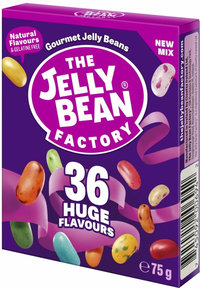 Objevte svět fantastických chutí Jelly Bean! Tato barevná směs 36 žvýkacích bonbonů nabízí neuvěřitelně pestrou paletu chutí – od svěžího ovoce přes sladké dezerty až po hravé speciality. Každý bonbon je malý gurmánský zážitek díky obsahu pravých ovocných šťáv.